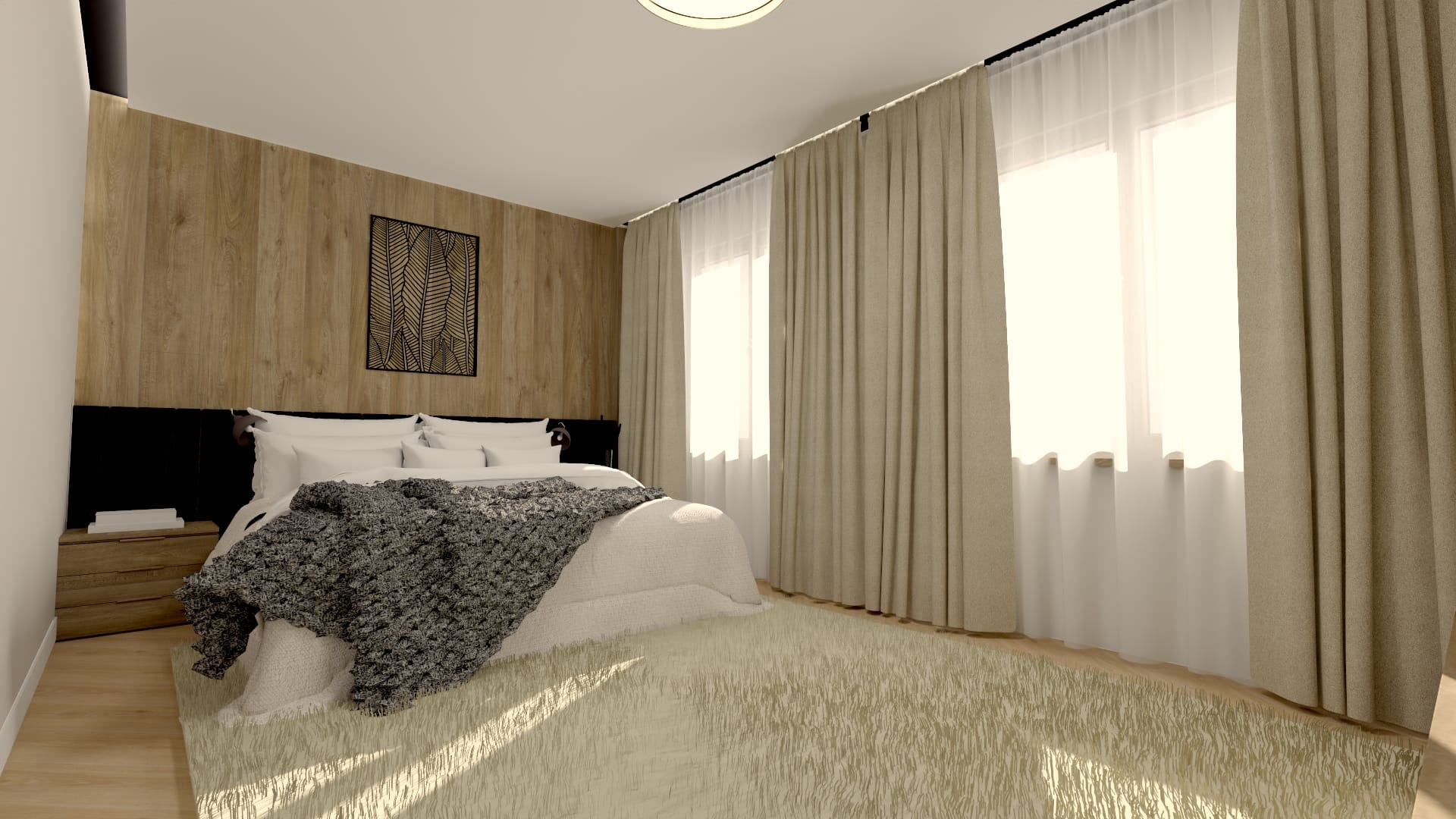 Opracowanie układu wnętrza, dobór kolorystyki i materiałów, stworzenie wizualizacji 3D.